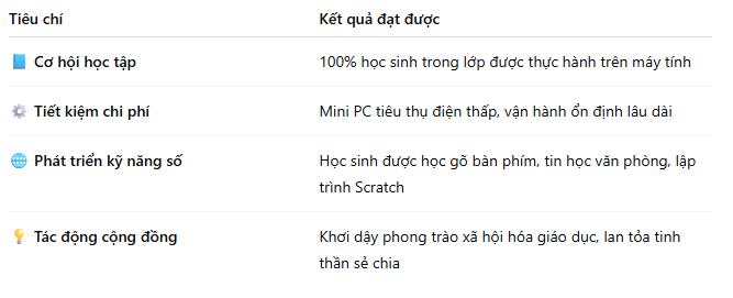 Chương trình tặng máy tính học sinh vùng cao – Góp phần thu hẹp khoảng cách số View Larger Image Trong kỷ nguyên chuyển đổi số, công nghệ trở thành công cụ không thể thiếu trong giáo dục. Tuy nhiên, ở nhiều vùng núi, vùng sâu vùng xa của Việt Nam, việc tiếp cận máy tính và Internet vẫn là một điều xa xỉ. Chính vì vậy, chương trình tặng máy tính học sinh vùng cao đã ra đời, mang đến hy vọng, tri thức và cơ hội cho hàng nghìn em nhỏ – những “mầm non công nghệ” tương lai của đất nước. 🌱 1. Mục tiêu của chương trình tặng máy tính học sinh vùng caoChương trình hướng tới sứ mệnh thu hẹp khoảng cách số giữa vùng thuận lợi và vùng khó khăn, giúp các em học sinh vùng cao: Tiếp cận tri thức công nghệ sớm. Học tin học cơ bản, rèn kỹ năng số. Tham gia lớp học online, học qua phần mềm tương tác. Tự tin hòa nhập với thế giới học tập hiện đại. “Một chiếc máy tính nhỏ bé có thể mở ra cánh cửa tri thức to lớn cho một đứa trẻ.” – đó là thông điệp xuyên suốt của chương trình. ⚙️ 2. Vì sao máy tính học sinh vùng cao cần được hỗ trợ 💡 2.1. Thực trạng khó khăn tại các trường vùng cao Nhiều trường học ở vùng sâu, vùng xa chỉ có vài bộ máy tính cũ, hỏng hóc, không đủ phục vụ cho hàng chục học sinh.Cơ sở vật chất hạn chế, nguồn điện yếu, đường truyền Internet không ổn định khiến việc dạy tin học trở nên khó khăn.Do đó, việc tặng máy tính cho học sinh vùng cao không chỉ là hỗ trợ thiết bị, mà còn là đầu tư cho tương lai giáo dục số. 💡 2.2. Mini PC – Giải pháp phù hợp cho điều kiện vùng cao Tiết kiệm điện năng: chỉ tiêu thụ 10–20W, hoạt động ổn định với điện áp yếu. Kích thước nhỏ gọn: dễ bố trí trong phòng học chật hẹp. Giá thành thấp: chỉ bằng một nửa laptop thông thường, nhưng đủ mạnh để học online, Word, Excel, Paint và lập trình cơ bản. Bền bỉ và dễ bảo trì: linh kiện phổ biến, tuổi thọ cao, ít hư hỏng. 💝 3. Hành trình lan tỏa yêu thương qua máy tính khuyến học 🎯 3.1. Doanh nghiệp – Cầu nối công nghệ và cộng đồng Nhiều doanh nghiệp Việt Nam đã tiên phong đồng hành cùng chương trình tặng máy tính khuyến học.Họ không chỉ tài trợ thiết bị, mà còn hỗ trợ kỹ thuật, cài đặt phần mềm học tập và bảo hành định kỳ. 🏫 3.2. Các trường học vùng cao được hưởng lợi Nhờ chương trình này, nhiều ngôi trường tại các tỉnh như Lào Cai, Hà Giang, Sơn La, Kon Tum… đã có thể tổ chức lớp học tin học chính quy, nơi học sinh được trực tiếp thao tác, học lập trình Scratch, vẽ bằng Paint, làm bài tập Word, Excel… 🌄 4. Câu chuyện thực tế – Ánh sáng công nghệ ở Trường Tiểu học Mường Khương (Lào Cai) Trước đây, Trường Tiểu học Mường Khương chỉ có 3 máy tính cũ, chạy chậm và thường xuyên hỏng.Năm 2024, trường nhận được 30 bộ Mini PC Intel N100 trong khuôn khổ chương trình tặng máy tính học sinh vùng cao do một doanh nghiệp phối hợp với chính quyền địa phương tổ chức. Giờ đây, mỗi lớp đều có tiết học tin học thực hành. “Em chưa từng được dùng máy tính thật. Giờ em biết đánh chữ, biết vẽ bằng chuột và tra Google để học Toán.” – em H’Mông, học sinh lớp 5, chia sẻ. Cô giáo chủ nhiệm nói thêm: “Những chiếc máy tính nhỏ bé ấy đã thay đổi hoàn toàn cách dạy học. Học sinh hào hứng hơn, tự tin hơn, và dám ước mơ hơn.” Những chiếc máy tính khuyến học ấy không chỉ mang đến tri thức, mà còn mang lại niềm tin và động lực cho cả giáo viên lẫn học sinh vùng cao. 🧠 5. Hiệu quả xã hội và giáo dục🧩 6. Đề xuất triển khai chương trình hiệu quả hơn Kêu gọi doanh nghiệp đồng hành lâu dài:Xây dựng mô hình “Doanh nghiệp – Nhà trường – Chính quyền địa phương” để duy trì hỗ trợ kỹ thuật và đào tạo. Chuẩn hóa cấu hình thiết bị:Các dòng Mini PC Intel N100, N5105, hoặc AMD Ryzen 3 nên được ưu tiên vì vừa bền, vừa tiết kiệm điện. Tổ chức các lớp đào tạo giáo viên:Để đảm bảo giáo viên vùng cao có thể hướng dẫn học sinh sử dụng máy tính hiệu quả, an toàn. Kết hợp nội dung giáo dục số:Học sinh không chỉ học tin học cơ bản, mà còn được hướng dẫn tư duy công nghệ, bảo mật và sáng tạo nội dung. 🌐 7. Tham khảo thêm: Chương trình “Sóng và máy tính cho em” – Bộ Thông tin & Truyền thông Việt Nam Báo Dân Trí – Hành trình máy tính về vùng cao ✅ Kết luậnChương trình tặng máy tính học sinh vùng cao không chỉ mang ý nghĩa thiện nguyện, mà còn là bước đi chiến lược trong quá trình chuyển đổi số quốc gia.Mỗi chiếc máy tính được trao đi là một tia sáng hy vọng, giúp học sinh vùng cao tiếp cận tri thức, phát triển kỹ năng, và tự tin bước vào tương lai. Sự chung tay của doanh nghiệp, tổ chức xã hội và cộng đồng sẽ tiếp tục viết nên câu chuyện nhân văn – nơi công nghệ không chỉ là công cụ, mà là cầu nối tri thức, niềm tin và cơ hội cho thế hệ trẻ Việt Nam. TOP 10 