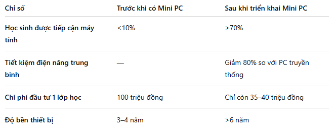 Hành trình “Máy tính nhỏ – Ước mơ lớn”: Mini PC cho vùng cao View Larger Image 🌄 1. Khi tri thức vẫn còn xa với trẻ em vùng caoỞ nhiều vùng cao, vùng sâu vùng xa, việc tiếp cận công nghệ đối với học sinh vẫn là một ước mơ.Trong khi học sinh thành phố học trực tuyến, làm bài trên máy tính, lập trình robot, thì các em nhỏ ở miền núi vẫn phải viết tay, học chay, không có thiết bị số để tiếp cận Internet hay tri thức toàn cầu. Chính vì vậy, chương trình “Máy tính nhỏ – Ước mơ lớn” được khởi xướng – mang đến những chiếc Mini PC cho vùng cao, với hy vọng mở ra cánh cửa công nghệ cho những đứa trẻ ở nơi khó khăn nhất của đất nước. ⚙️ 2. Mini PC là gì và vì sao phù hợp với vùng cao?Mini PC là dòng máy tính có kích thước nhỏ gọn, chỉ bằng lòng bàn tay, nhưng vẫn tích hợp đầy đủ CPU, RAM, SSD, cổng USB, HDMI, LAN và Wi-Fi như một máy tính để bàn thông thường.Điểm khác biệt nằm ở sự tiết kiệm năng lượng, độ bền cao và giá thành rẻ, giúp Mini PC trở thành giải pháp công nghệ hoàn hảo cho vùng xa. Ưu điểm vượt trội của Mini PC: 🔋 Tiêu thụ điện năng cực thấp: chỉ khoảng 10–25W, hoạt động tốt với điện yếu hoặc năng lượng mặt trời. 💻 Đầy đủ chức năng: chạy mượt Windows, Office, trình duyệt web, phần mềm học trực tuyến. 🧱 Thiết kế nhỏ gọn, chắc chắn: dễ mang theo, dễ lắp đặt, ít hỏng hóc. 🌡️ Hoạt động ổn định 24/7: không cần quạt tản nhiệt, chịu lạnh và bụi tốt. 💰 Giá thành hợp lý: chỉ từ 3–5 triệu đồng, tiết kiệm hơn 50% so với PC truyền thống. Với những đặc điểm trên, Mini PC thực sự là “chiếc máy tính nhỏ nhưng có sức mạnh lớn”, đặc biệt phù hợp cho vùng sâu vùng xa, nơi cơ sở hạ tầng còn hạn chế. 🧠 3. Mini PC – Hạt mầm tri thức trong hành trình đến vùng cao Chương trình “Máy tính nhỏ – Ước mơ lớn” không chỉ đơn thuần là mang thiết bị lên núi, mà còn là hành trình gieo mầm tri thức. 🎓 Tại trường học Cung cấp Mini PC cho phòng học tin học, giúp học sinh học kỹ năng số cơ bản. Kết nối Internet, giúp các em tra cứu thông tin, học ngôn ngữ, học STEM. Giáo viên có thể sử dụng Mini PC để giảng dạy, trình chiếu, và soạn bài giảng trực tuyến. 🏫 Tại thư viện và trung tâm cộng đồng Mini PC được dùng làm máy tra cứu thông tin, học ngoại ngữ, và kỹ năng sống. Giúp thanh thiếu niên tiếp cận Internet và học kỹ năng nghề cơ bản như Word, Excel, thiết kế, lập trình. UNICEF Vietnam – Hỗ trợ giáo dục và chuyển đổi số cho trẻ em vùng cao 🩺 Tại trạm y tế và cơ quan hành chính Dùng để lưu trữ hồ sơ, in tài liệu, kết nối thiết bị đo, hoặc quản lý dữ liệu dân cư. Vận hành ổn định, ít cần bảo trì – cực kỳ phù hợp với địa bàn xa xôi. 💚 4. Khi doanh nghiệp và cộng đồng chung tayMột trong những điểm sáng của hành trình “Máy tính nhỏ – Ước mơ lớn” chính là sự chung tay của doanh nghiệp, tổ chức và cá nhân yêu công nghệ.Thông qua việc tặng Mini PC cho vùng cao, các đơn vị không chỉ thực hiện trách nhiệm xã hội (CSR) mà còn góp phần thu hẹp khoảng cách số giữa thành thị và nông thôn. Doanh nghiệp có thể đóng góp bằng cách: Tài trợ thiết bị Mini PC mới hoặc tái chế từ hệ thống văn phòng. Cung cấp tài chính cho dự án giáo dục công nghệ. Hỗ trợ kỹ thuật, hướng dẫn cài đặt phần mềm học tập và bảo trì thiết bị. Intel NUC – Mini PC hiệu năng cao, tiết kiệm năng lượng Mỗi Mini PC được tặng đi là một “chiếc cầu nối tri thức”, giúp trẻ em vùng cao có thêm cơ hội vươn lên và thay đổi tương lai. ⚡ 5. Hiệu quả và tác động xã hộiNhờ Mini PC, hàng ngàn học sinh vùng cao đã có cơ hội tiếp xúc với máy tính lần đầu tiên, mở rộng cánh cửa tri thức và nuôi dưỡng ước mơ về tương lai số. 🌱 6. Mini PC – Công nghệ nhỏ, ước mơ lớn“Máy tính nhỏ – Ước mơ lớn” không chỉ là một dự án, mà là một biểu tượng nhân văn.Nó nhắc nhở rằng, một thiết bị nhỏ bé cũng có thể thay đổi cuộc đời một đứa trẻ – giúp các em không còn đứng ngoài thế giới công nghệ. Khi mỗi em học sinh vùng cao có một chiếc Mini PC, đó không chỉ là món quà học tập, mà còn là niềm tin vào tương lai – nơi mọi trẻ em Việt Nam đều có cơ hội học hỏi và phát triển bình đẳng. 🌟 Mini PC – Máy tính nhỏ, nhưng ước mơ lớn. Mini PC – Máy Tính Công Nghiệp IPC AI PC – Máy tính AI Intel F1A | Intel Ultra 7 155H 10.500.000₫ Thêm vào giỏ hàng Details AI PC – Máy tính AI Intel F2A | Intel Ultra 7 155H 10.500.000₫ Thêm vào giỏ hàng Details Sale! Máy All In One cho văn phòng – PC Gaming – INTEL i5 12450H 8 lõi 12 luồng 14.500.000₫ Giá gốc là: 14.500.000₫.13.950.000₫Giá hiện tại là: 13.950.000₫. Thêm vào giỏ hàng Details Máy all in one giá rẻ – PC Gaming – INTEL I5 10500H 6 lõi 12 luồng 13.700.000₫ Thêm vào giỏ hàng Details Máy tính AI – AI PC | Intel I9-12900H + Nvidia RTX3080 28.500.000₫ Thêm vào giỏ hàng Details Máy tính AI AMD AM18 | Ryz