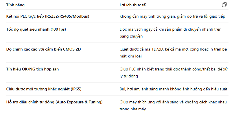Máy quét mã vạch công nghiệp hỗ trợ kết nối PLC – Bền bỉ, chính xác, dễ tích hợp View Larger Image 🏭 1. Giới thiệu: Từ mã vạch đến tự động hóa nhà máy Trong các nhà máy hiện đại, việc quản lý dữ liệu sản phẩm không còn dừng lại ở khâu in tem hay kiểm tra thủ công.Thay vào đó, máy quét mã vạch công nghiệp kết nối PLC (Programmable Logic Controller) đã trở thành giải pháp cốt lõi giúp tự động hóa quá trình đọc – ghi – phản hồi dữ liệu ngay trên dây chuyền sản xuất. ⚙️ 2. Lợi ích vượt trội khi sử dụng máy quét mã vạch công nghiệp kết nối PLC🧩 3. Ứng dụng trong sản xuất công nghiệpMáy quét mã vạch công nghiệp hỗ trợ kết nối PLC được ứng dụng trong nhiều ngành: Ngành điện tử: quét mã PCB để xác định công đoạn và xuất dữ liệu sản xuất. Ngành cơ khí: nhận dạng linh kiện để robot gắp chính xác vị trí. Ngành thực phẩm & đồ uống: kiểm tra hạn sử dụng và mã lô tự động trước khi đóng gói. Ngành logistics: đồng bộ dữ liệu sản phẩm từ máy quét lên hệ thống SCADA/MES qua PLC. Nhờ kết nối PLC, mọi thao tác trở nên tự động và chính xác, đảm bảo dữ liệu được xử lý trong thời gian thực. 🔌 4. Nguyên lý hoạt động và cách kết nốiMột hệ thống tiêu chuẩn gồm 3 thành phần: Máy quét mã vạch công nghiệp (ví dụ: Opticon NLV-5201, Keyence, Cognex) PLC trung tâm điều khiển (Siemens, Mitsubishi, Omron, Delta) Cáp giao tiếp công nghiệp (RS232/RS485 hoặc Modbus) 🔹 Quy trình vận hành: PLC gửi tín hiệu kích hoạt (Trigger) đến máy quét. Máy quét đọc mã vạch trên sản phẩm. Dữ liệu được truyền trực tiếp về PLC theo giao thức Modbus hoặc ASCII. PLC phân tích chuỗi dữ liệu, xuất tín hiệu điều khiển đến băng tải, motor hoặc robot. OK/NG output từ máy quét báo kết quả đọc cho PLC để xử lý tiếp theo. 🧠 5. Vì sao nên chọn máy quét mã vạch công nghiệp thay vì máy cầm tayMáy quét công nghiệp không chỉ là “mắt đọc thông minh” mà còn là “bộ não dữ liệu” của dây chuyền hiện đại. 🏗️ 6. Câu chuyện thực tế: Tự động hóa nhà máy sản xuất bao bì tại Long AnTrước đây, nhà máy sản xuất bao bì sử dụng nhân công để quét mã từng cuộn nhãn và nhập tay vào hệ thống ERP. Điều này khiến tốc độ sản xuất chậm và dễ sai sót khi xử lý hàng ngàn mã/ngày. Sau khi triển khai máy quét mã vạch công nghiệp kết nối PLC Siemens S7-1200, mọi công đoạn được tự động hóa hoàn toàn: Khi cuộn bao bì đi qua cảm biến, PLC gửi tín hiệu Trigger đến máy quét. Máy quét đọc mã, gửi dữ liệu qua RS-485 đến PLC. PLC tự động phân loại nhãn đúng/mã lỗi và điều khiển băng tải đẩy sản phẩm không đạt ra khỏi dây chuyền. ✅ Kết quả thực tế: Tốc độ xử lý tăng 60% Giảm 100% lỗi nhập tay Giảm chi phí nhân công 30% Hệ thống hoạt động ổn định 24/7, không cần bảo trì thường xuyên Quản lý kỹ thuật chia sẻ: “Trước đây, việc kiểm mã tốn hàng giờ. Giờ chỉ mất vài giây và hoàn toàn tự động. PLC nhận tín hiệu quét tức thì, giúp quy trình trơn tru và chính xác tuyệt đối.” 🚀 7. Tính linh hoạt và dễ tích hợp Dễ dàng lập trình qua Modbus RTU hoặc ASCII. Tương thích PLC Siemens, Omron, Mitsubishi, Delta, Schneider. Có thể kết nối qua gateway Ethernet/RS485 để mở rộng hệ thống IoT công nghiệp. Tích hợp với phần mềm MES/ERP, truy xuất dữ liệu trực tuyến. 🌍 8. Kết luậnMáy quét mã vạch công nghiệp hỗ trợ kết nối PLC là giải pháp không thể thiếu trong quá trình chuyển đổi sang nhà máy thông minh (Smart Factory).Với độ bền cao, khả năng đọc chính xác, và giao tiếp ổn định với PLC, đây là lựa chọn tối ưu cho các doanh nghiệp muốn tự động hóa quy trình, giảm chi phí và nâng cao chất lượng sản xuất. Omron Automation – Industrial Control and Sensing Solutions Opticon – Industrial Barcode & Vision Systems Top Máy Quét Mã Vạch Sử Dụng Trong Nhà Máy Máy đọc căn cước công dân – Máy quét mã vạch – Opticon PR11 5.450.000₫ Thêm vào giỏ hàng Details Máy quét mã QR – Máy đọc mã vạch băng chuyền – Opticon F70 3.950.000₫ Thêm vào giỏ hàng Details Máy quét mã vạch – Máy đọc căn cước công dân – Opticon M11 4.350.000₫ Thêm vào giỏ hàng Details Máy quét mã vạch – Máy đọc mã vạch – Opticon NLV-1001 4.250.000₫ Thêm vào giỏ hàng Details Máy quét mã vạch băng chuyền – Máy quét mã vạch công nghiệp | Opticon Q-250 3.350.000₫ Thêm vào giỏ hàng Details Máy quét mã vạch công nghiệp – Máy đọc mã vạch băng chuyền– Opticon NLV-3101 4.950.000₫ Thêm vào giỏ hàng Details Máy quét mã vạch công nghiệp – Máy đọc mã vạch băng chuyền– Opticon NLV-5201 5.000.000₫ Thêm vào giỏ hàng Details Sale! Máy quét mã vạch công nghiệp- Máy quét băng chuyền – Opticon NLV-4001 3.950.000₫ Giá gốc là: 3.950.000₫.3.200.000₫Giá hiện tại là: 3.200.000₫. Thêm vào giỏ hàng Details Sale! Máy quét mã vạch đếm sản phẩm – Máy quét công nghiệp | Opticon P-250 3.950.000₫ Giá gốc là: 3.950.000₫.3.500.000₫Giá hiện tại là: 3.500.000₫. Thêm vào giỏ hàng Details Danh mục 