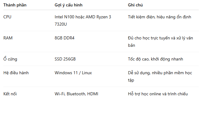Máy tính khuyến học – Cầu nối tri thức cho học sinh vùng cao View Larger Image Trong hành trình thu hẹp khoảng cách giáo dục giữa vùng núi và đồng bằng, máy tính khuyến học đã trở thành biểu tượng của sự sẻ chia và hy vọng. Mỗi chiếc máy tính không chỉ là thiết bị công nghệ, mà là cánh cửa mở ra tri thức, mang cơ hội học tập bình đẳng đến với hàng nghìn học sinh vùng cao Việt Nam. Với sự hỗ trợ từ các doanh nghiệp, tổ chức xã hội và chương trình “Sóng và máy tính cho em” của Bộ Thông tin & Truyền thông, nhiều trường học vùng sâu vùng xa nay đã có thể tổ chức lớp học tin học, dạy học online và kết nối tri thức toàn cầu. 🌱 1. Máy tính khuyến học là gì và vì sao cần thiếtMáy tính khuyến học là những thiết bị công nghệ (thường là Mini PC, laptop học sinh hoặc máy tính All-in-one giá rẻ) được các tổ chức, doanh nghiệp, hoặc mạnh thường quân tài trợ cho các trường vùng sâu vùng xa, giúp học sinh có điều kiện học tập tốt hơn. 🎯 Vai trò của máy tính khuyến học: Tăng khả năng tiếp cận công nghệ: Học sinh vùng cao có thể học tin học, tra cứu tài liệu, và rèn kỹ năng số từ sớm. Tạo điều kiện học online: Khi hạ tầng Internet dần phủ sóng, máy tính giúp kết nối học sinh với giáo viên ở xa. Khơi dậy niềm đam mê học tập: Trẻ em được tiếp cận công nghệ sẽ tự tin hơn, chủ động hơn trong học tập. Giảm khoảng cách vùng miền: Tri thức số không còn chỉ là đặc quyền của thành phố ⚙️ 2. Vì sao Mini PC là lựa chọn tối ưu cho chương trình khuyến học💡 Lý do 1 – Tiết kiệm chi phí đầu tư Mini PC có giá chỉ từ 4 đến 5 triệu đồng, bằng một nửa laptop phổ thông. Cấu hình đủ mạnh để học online, Word, Excel, PowerPoint và lập trình cơ bản. 💡 Lý do 2 – Tiết kiệm điện năng Tiêu thụ chỉ khoảng 10–20W, hoạt động ổn định với nguồn điện yếu – điều kiện phổ biến ở vùng cao. 💡 Lý do 3 – Dễ bảo trì, tuổi thọ cao Linh kiện tiêu chuẩn PC, dễ thay thế, bảo dưỡng. Không có pin như laptop, tránh nguy cơ hư hỏng khi để lâu không dùng. 💡 Lý do 4 – Linh hoạt khi triển khai Có thể gắn trực tiếp sau màn hình (chuẩn VESA), tạo thành máy tính All-in-one tiết kiệm không gian. Dễ lắp đặt hàng loạt cho phòng học hoặc trung tâm cộng đồng 🧠 3. Cấu hình gợi ý cho máy tính khuyến học vùng cao🧩 4. Các ứng dụng học tập nên cài sẵn Google Classroom, Zoom, Microsoft Teams: Dạy – học trực tuyến. Kahoot!, Scratch: Tạo trò chơi học tập, lập trình cơ bản. LibreOffice hoặc Microsoft Office: Soạn thảo, tính toán, trình bày. ViettelStudy / Hoc247: Cổng học trực tuyến miễn phí phổ biến tại Việt Nam. 💬 5. Câu chuyện thực tế – Khi Mini PC mang tri thức đến vùng cao🌄 Trường Tiểu học Lao Chải (Sa Pa, Lào Cai) Năm 2024, nhờ chương trình “Máy tính khuyến học – Kết nối tri thức vùng cao”, Trường Lao Chải nhận được 20 bộ Mini PC Intel N100 do doanh nghiệp tài trợ. Trước đây, phòng tin học của trường chỉ có 4 chiếc máy cũ, thường xuyên hỏng. Giáo viên phải dạy lý thuyết “chay”. Giờ đây, mỗi học sinh có thể trực tiếp thực hành, học gõ bàn phím, vẽ bằng Paint và thậm chí học lập trình Scratch cơ bản. “Lần đầu tiên em được mở máy tính thật và học gõ chữ. Con muốn sau này làm kỹ sư phần mềm!” – em Sùng Thị Mỷ, học sinh lớp 5, hào hứng chia sẻ. Hiệu trưởng nhà trường nói thêm: “Những chiếc Mini PC nhỏ bé này đã thay đổi cách chúng tôi dạy học. Chúng mở ra cánh cửa mới cho trẻ em vùng núi tiếp cận công nghệ.” Đây là minh chứng rõ ràng rằng máy tính khuyến học không chỉ mang đến tri thức, mà còn mang đến hy vọng. 📦 6. Cách doanh nghiệp và tổ chức có thể tham gia chương trình khuyến học Tài trợ thiết bị hoặc linh kiện máy tính: Mini PC, màn hình, bàn phím, chuột, UPS… Đồng hành triển khai dự án học tập số hóa: Cung cấp phần mềm học trực tuyến, tổ chức khóa đào tạo tin học. Ủng hộ theo mô hình “1 học sinh – 1 máy tính”: Dành cho học sinh nghèo vượt khó, hỗ trợ học tập dài hạn. Việc đồng hành không chỉ mang ý nghĩa xã hội mà còn góp phần phát triển cộng đồng bền vững – đúng tinh thần “Doanh nghiệp vì giáo dục”. 🌐 7. Tác động tích cực của chương trình máy tính khuyến học🔗 Tham khảo thêm: Chương trình “Sóng và máy tính cho em” – Bộ Thông tin & Truyền thông Việt Nam Báo VnExpress – Câu chuyện máy tính về vùng cao ✅ Kết luậnMáy tính khuyến học không chỉ là thiết bị công nghệ, mà là chiếc cầu nối tri thức, mang ánh sáng học tập đến những nơi còn khó khăn.Mỗi chiếc máy nhỏ bé đều chứa đựng một sứ mệnh lớn – giúp thế hệ trẻ vùng cao bắt kịp kỷ nguyên số, tự tin bước ra thế giới. Nếu mỗi doanh nghiệp, tổ chức hay cá nhân chung tay một phần, hàng ngàn học sinh Việt Nam sẽ có thêm cơ hội thay đổi tương lai. TOP 10 MẪU MÁY TÍNH CHO HỌC SINH Máy tính công nghiệp chống bụi và nước – Bộ xử lý Intel J412