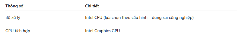 👉 CPU Intel dòng trung bình 👉 RAM 8GB 👉 SSD NVMe 256GB trở lên 👉 Dual LAN