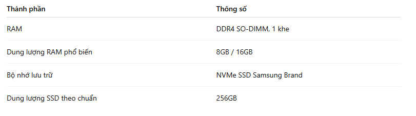 Bản tiêu chuẩn dùng NVMe Samsung 256GB đảm bảo: