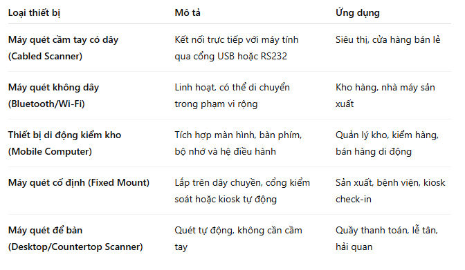 Thiết bị đọc mã vạch View Larger Image 1️⃣ Thiết bị đọc mã vạch là gì?Thiết bị đọc mã vạch (Barcode Scanner) là công cụ chuyển đổi các vạch đen trắng trên mã barcode thành dữ liệu kỹ thuật số để nhập vào hệ thống máy tính.Các thiết bị này giúp doanh nghiệp tự động hóa quy trình nhập liệu, bán hàng, kiểm kho và truy xuất nguồn gốc sản phẩm – nhanh hơn, chính xác hơn, và giảm thiểu sai sót thủ công. Hiện nay, thiết bị đọc mã vạch đã phát triển mạnh với nhiều công nghệ khác nhau: từ laser truyền thống đến imager CMOS 2D hiện đại, hỗ trợ cả QR Code, Data Matrix, PDF417 và nhiều chuẩn mới trong y tế hoặc logistics. 2️⃣ Phân loại thiết bị đọc mã vạch phổ biến3️⃣ Ưu điểm khi sử dụng thiết bị đọc mã vạch ⏱ Tốc độ xử lý nhanh: giảm thời gian nhập liệu lên tới 90%. 🎯 Độ chính xác cao: hạn chế tối đa sai sót trong nhập liệu thủ công. 💰 Tiết kiệm chi phí: giảm nhân công, tăng hiệu suất quản lý. 🔄 Kết nối linh hoạt: hỗ trợ Bluetooth, Wi-Fi, USB, RS232, NFC. 🧠 Tích hợp dễ dàng: tương thích hầu hết phần mềm POS, ERP, CRM. 4️⃣ Giải pháp nổi bật từ thương hiệu Opticon – Nhật Bản 🔹 Dòng máy cầm tay có dây – L-46XS Công nghệ: 2D CMOS Imager, tốc độ quét lên đến 120 fps. Ưu điểm: đọc được mã in mờ, cong, hoặc trên màn hình điện thoại. Độ bền: IP42, chịu rơi từ 1.8 m, có phiên bản kháng khuẩn. Phù hợp cho: siêu thị, bệnh viện, nhà máy. 🔹 Dòng không dây mini – OPN-6000 Bluetooth 5.4 BLE, nhỏ gọn chỉ 52 g, quét 1D & 2D cực nhanh. Hoạt động liên tục 4 ngày (1000 lượt quét/ngày). Lý tưởng cho bán lẻ, logistics, y tế, kết nối dễ dàng với PC hoặc smartphone. 🔹 Thiết bị kiểm kho Android – H-35 Hệ điều hành Android 11, màn hình 5.5”, CPU Qualcomm 2.0 GHz. Tích hợp máy quét 2D Imager tốc độ cao, camera 13 MP và pin 4.420 mAh. Chuẩn IP65, chịu rơi 2.4 m – phù hợp cho môi trường công nghiệp khắc nghiệt. Kết nối 4G, NFC, GPS, hoàn hảo cho nhân viên kho, giao nhận, y tế di động. 5️⃣ Ứng dụng thực tế của thiết bị đọc mã vạch6️⃣ Vì sao chọn Opticon Thương hiệu Nhật Bản từ 1976, tiên phong trong công nghệ quét mã vạch. Sản xuất theo tiêu chuẩn ISO 9001, phân phối hơn 65 quốc gia. Cam kết “Scan – Connect – Communicate”: kết nối dữ liệu liền mạch, đảm bảo độ tin cậy cao. 7️⃣ Kết luậnThiết bị đọc mã vạch ngày nay không chỉ là công cụ nhập liệu, mà là trung tâm của mọi hệ thống quản lý dữ liệu hiện đại.Với hơn 45 năm kinh nghiệm, Opticon mang đến giải pháp toàn diện — từ máy quét cầm tay, máy kiểm kho Android, đến thiết bị cố định trong dây chuyền sản xuất — đáp ứng mọi nhu cầu từ bán lẻ đến công nghiệp. GS1 – Global Barcode Standards – Tổ chức quốc tế quản lý tiêu chuẩn mã vạch toàn cầu. Barcode Technology News – Trang tin tức chuyên sâu về công nghệ mã vạch và nhận dạng tự động. Top Máy Quét Mã Vạch Sử Dụng Trong Nhà Máy Máy đọc căn cước công dân – Máy quét mã vạch – Opticon PR11 5.450.000₫ Thêm vào giỏ hàng Details Máy quét mã QR – Máy đọc mã vạch băng chuyền – Opticon F70 3.950.000₫ Thêm vào giỏ hàng Details Sale! Máy quét mã vạch – Máy đọc căn cước công dân – Opticon M11 4.350.000₫ Giá gốc là: 4.350.000₫.3.950.000₫Giá hiện tại là: 3.950.000₫. Thêm vào giỏ hàng Details Máy quét mã vạch – Máy đọc mã vạch – Opticon NLV-1001 4.250.000₫ Thêm vào giỏ hàng Details Máy quét mã vạch băng chuyền – Máy quét mã vạch công nghiệp | Opticon Q-250 3.350.000₫ Thêm vào giỏ hàng Details Máy quét mã vạch công nghiệp – Máy đọc mã vạch băng chuyền– Opticon NLV-3101 4.950.000₫ Thêm vào giỏ hàng Details Máy quét mã vạch công nghiệp – Máy đọc mã vạch băng chuyền– Opticon NLV-5201 4.950.000₫ Thêm vào giỏ hàng Details Máy quét mã vạch công nghiệp- Máy quét băng chuyền – Opticon NLV-4001 3.950.000₫ Thêm vào giỏ hàng Details Máy quét mã vạch đếm sản phẩm – Máy quét công nghiệp | Opticon P-250 3.950.000₫ Thêm vào giỏ hàng Details Danh mục máy quét mã vạchDÒNG MÁY CÓ DÂYDÒNG MÁY KHÔNG DÂYDÒNG MÁY KIỂM KHO PDADÒNG MÁY FITMOUNT Bán Hàng POS – Bảng Giá Điện TửMáy quét mã vạchMáy kiểm khoElectronic Shelf Label admin2025-10-22T11:52:45+07:00 Related Posts Quét mã vạch Quét mã vạch Tháng 10 21st, 2025 Máy quét mã vạch Máy quét mã vạch Tháng 10 21st, 2025 Phần mềm check-in miễn phí bằng mã vạch – Hỗ trợ CCCD & Passport Phần mềm check-in miễn phí bằng mã vạch – Hỗ trợ CCCD & Passport Tháng 10 10th, 2025 Hệ thống check-in khu vui chơi, công viên bằng mã vạch nhanh chóng Hệ thống check-in khu vui chơi, công viên bằng mã vạch nhanh chóng Tháng 10 10th, 2025 Ứng dụng check-in điểm du lịch tâm linh – Hỗ trợ mã QR trên căn cước Ứng dụng check-in điểm du lịch tâm linh – Hỗ trợ mã QR trên căn cước Tháng 10 10th, 2025